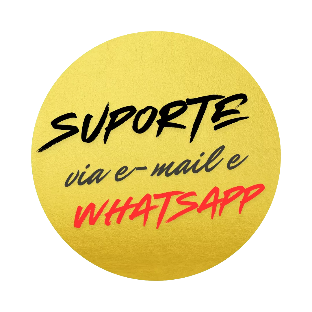Suporte direto por e-mail e WhatsApp, pra tirar dúvidas e não travar no meio do caminho.